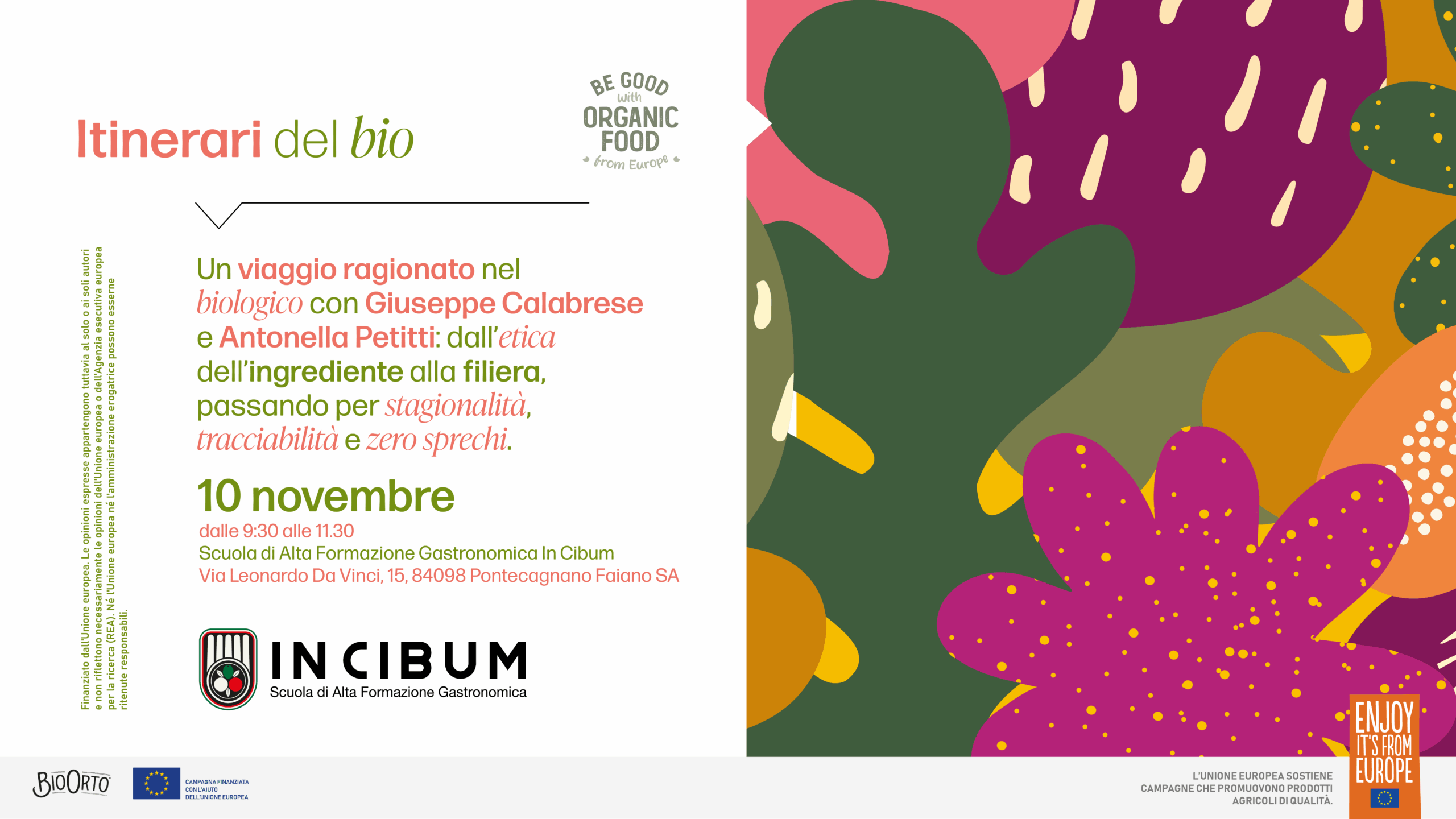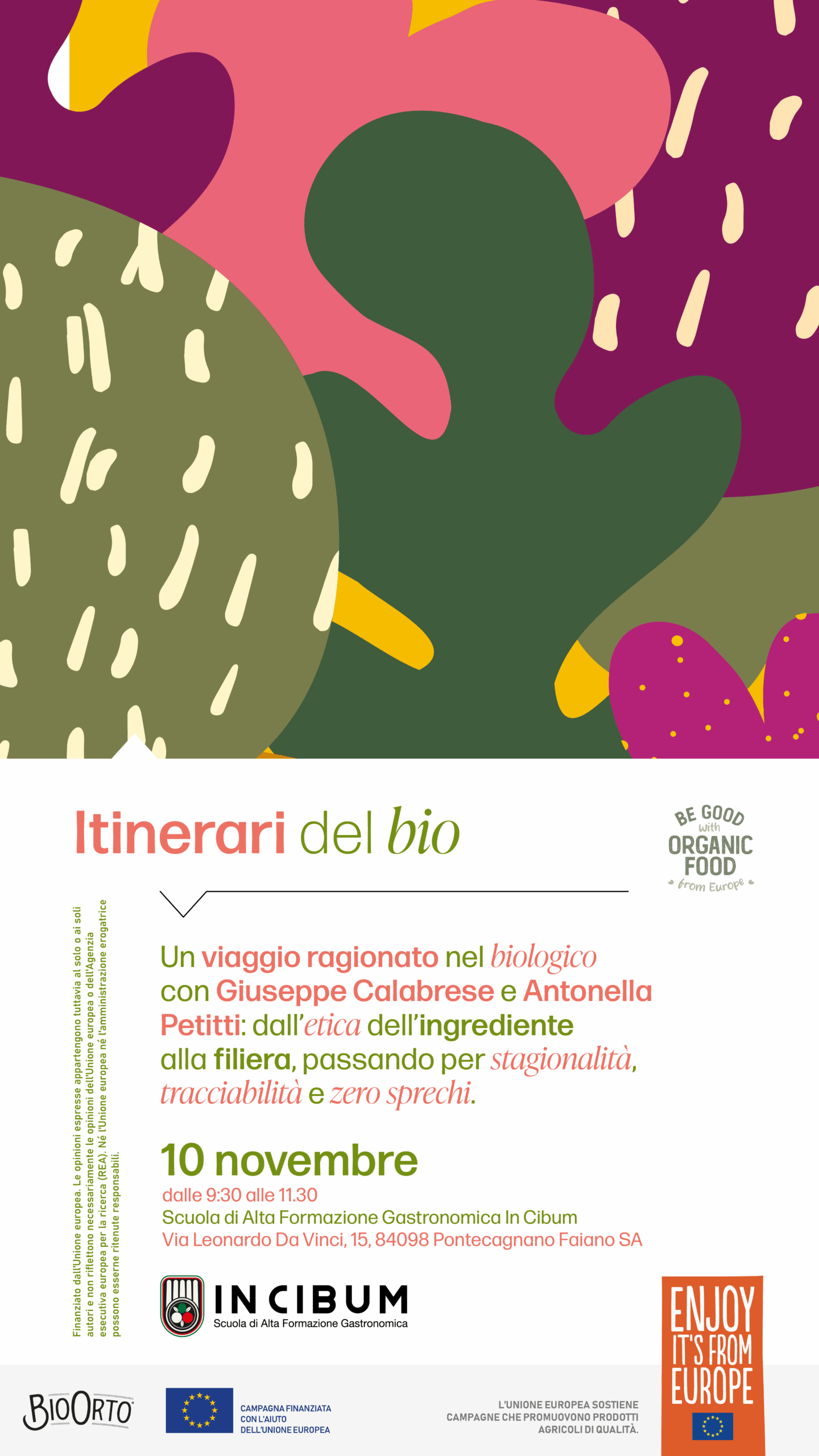 “BE GOOD WITH ORGANIC FOOD FROM EUROPE!” è un progetto presentato nell’ambito del programma AGRIP-SIMPLE-2023-IM-ORGANIC (Topic 2) e si rivolge principalmente a consumatori, operatori del settore Ho.re.ca e rivenditori con l’obiettivo di aumentare la consapevolezza e il riconoscimento del sistema di qualità dell’Unione sulla produzione biologica, tramite l’informazione trasparente e l’educazione.